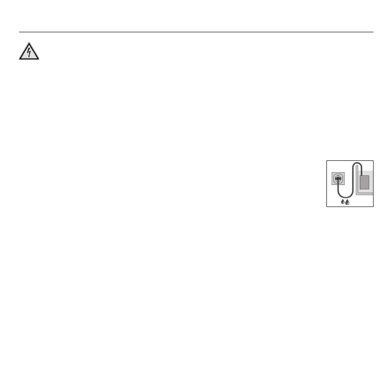 ‧ Beskyt stikkontakten og strømstikket mod fugt og væde.