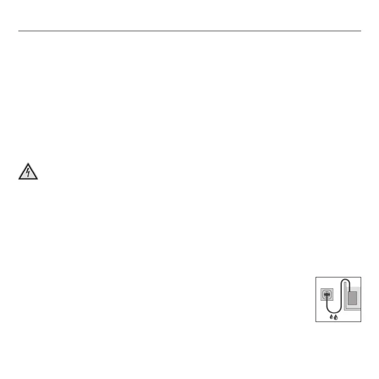 ‧ Suojaa pistorasia ja verkkopistoke kosteudelta ja mär-