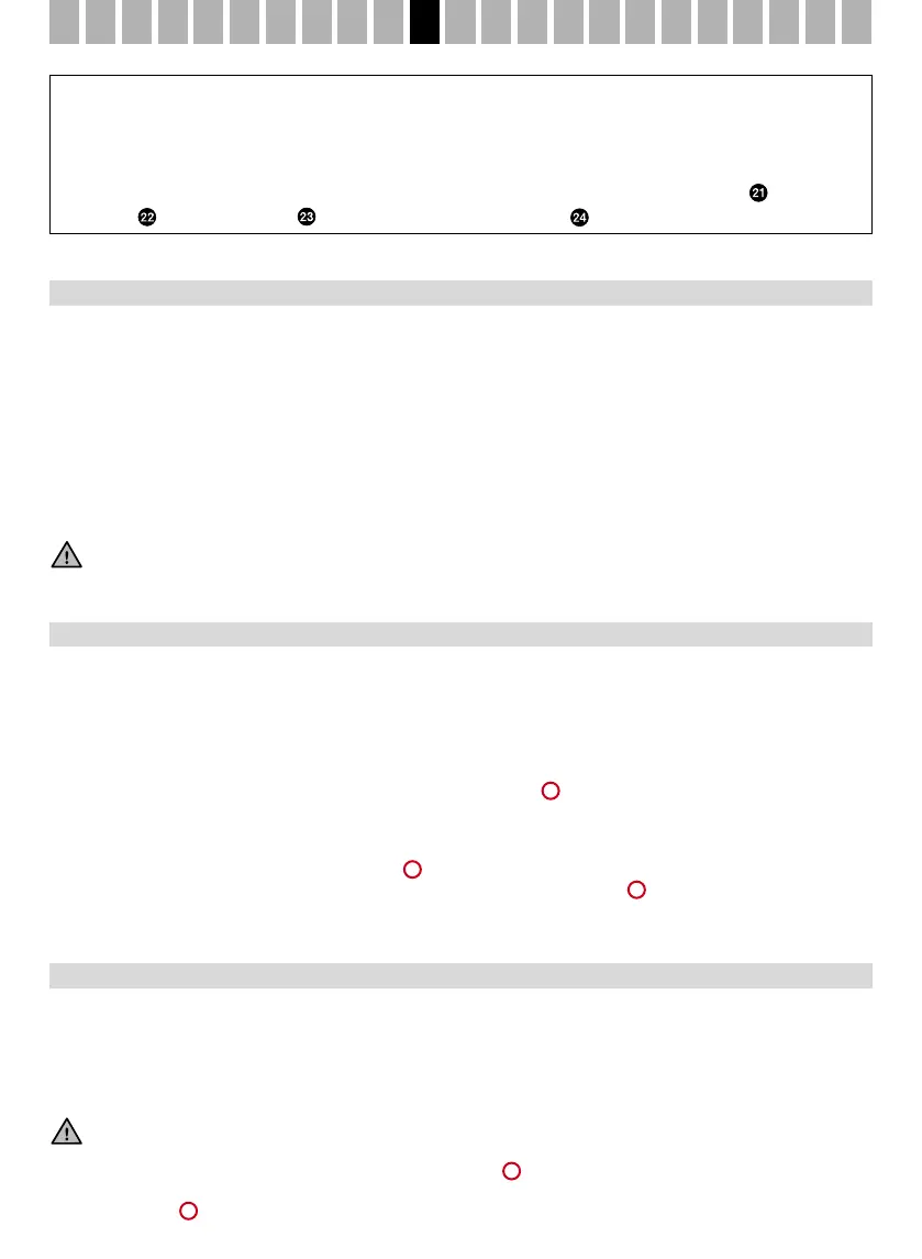 Sací funkce: Nyní otevřete oba uzavírací kohoutky na hadičkových spojích (obr. E) a sklopte multifunkční páčku