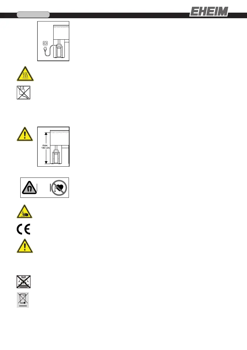 brandwonden! Wees bij apparaten met verwarming voorzichtig als