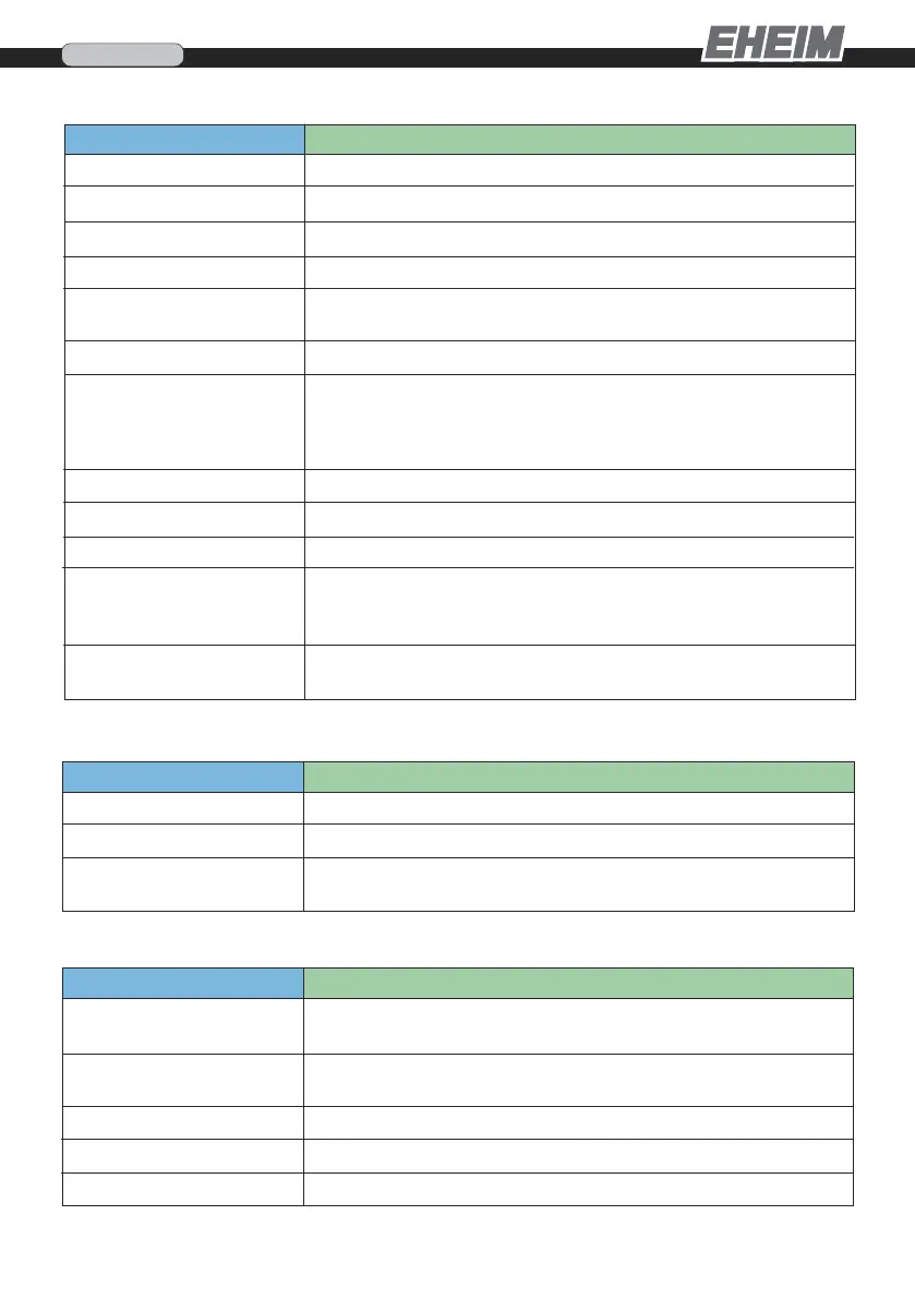 펌프가 더러움. 펌프실, 쿨링 및 윤활 채널을 에하임 클리닝 브러시 세트(4009560)로 청소하십시오.
