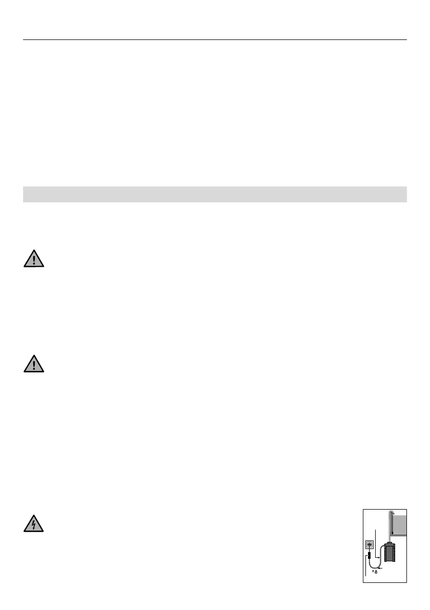 메인 소켓과 메인 플러그를 습기로부터 보호하십시오 케이블을 따라 주 전원 소 켓까지 물이 흐
