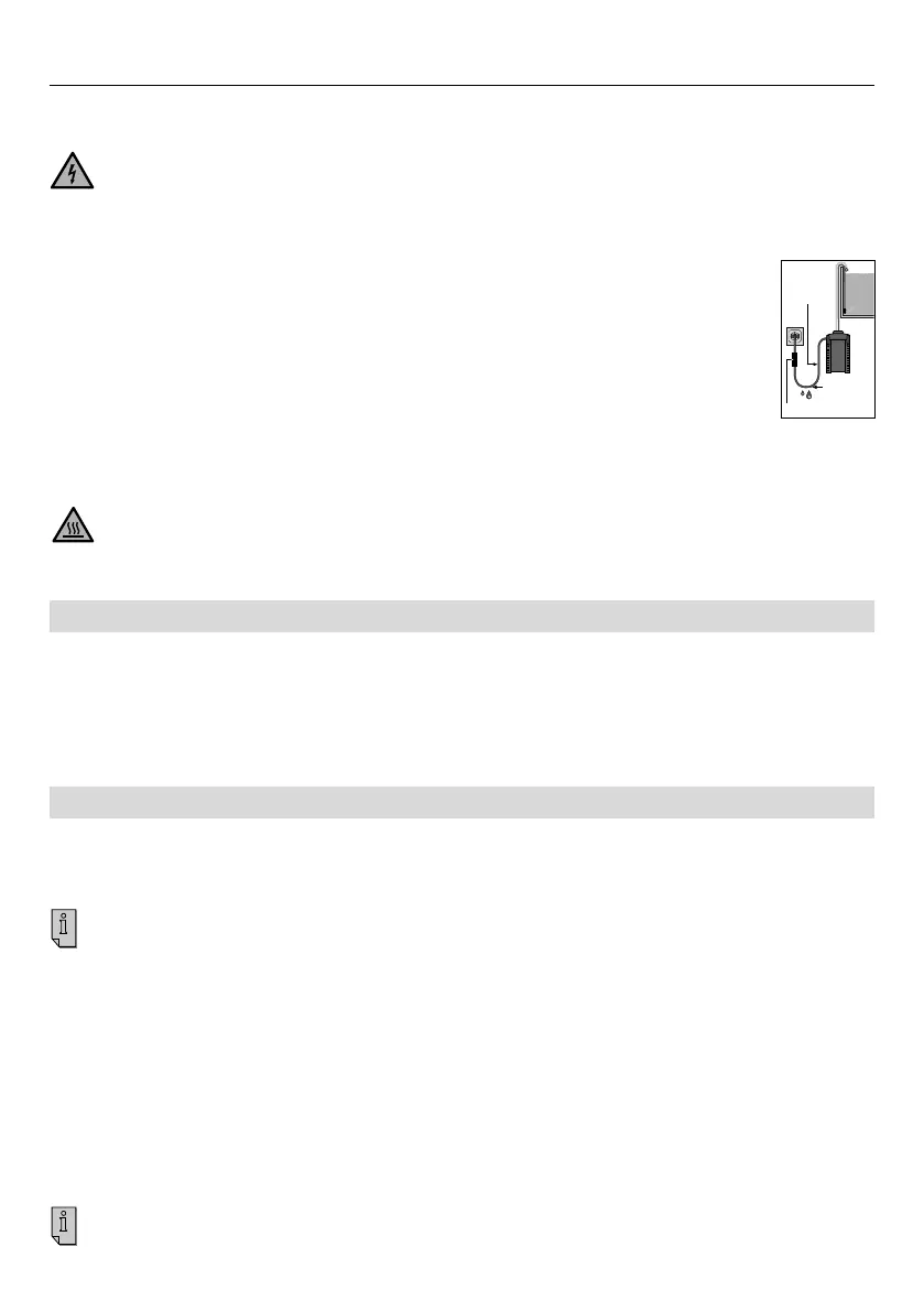 • Risiko for forbrænding! Enheden er meget varm under og umiddelbart efter brug. Rør aldrig ved