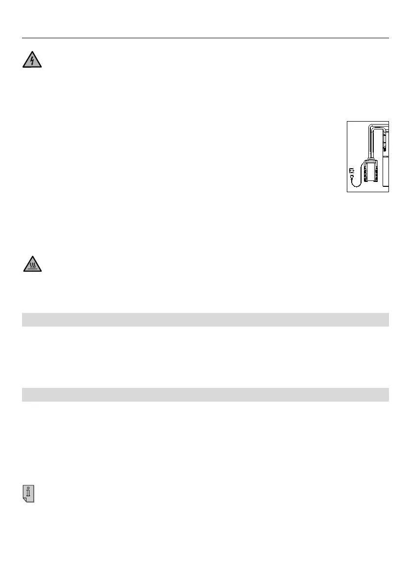 brug. Rør aldrig ved varme dele eller varmeenheden (38)!