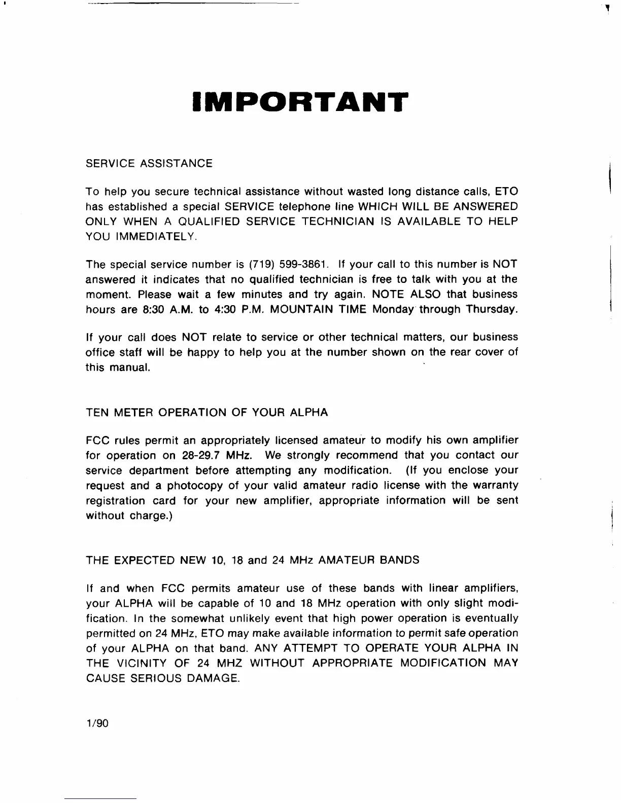 of your ALPHA on that band. ANY ATTEMPT TO OPERATE YOUR ALPHA IN
