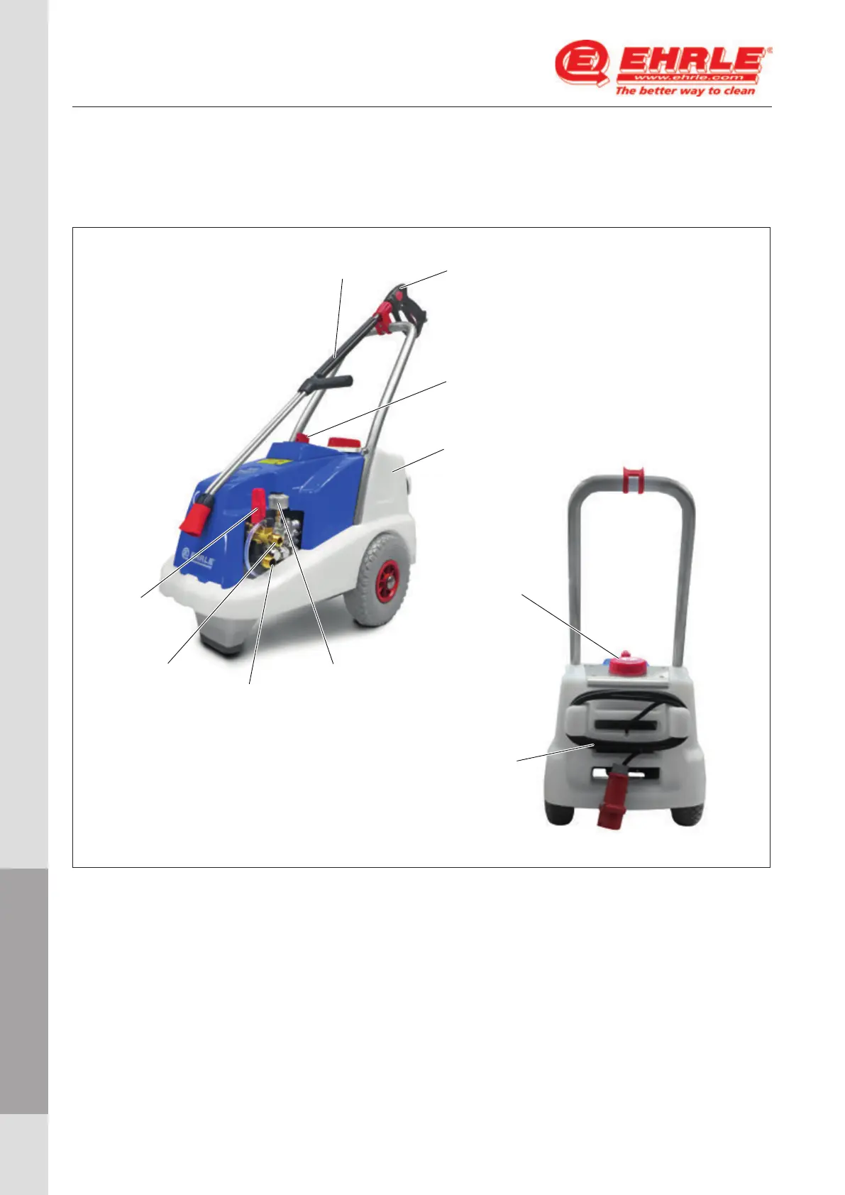 5 Connection water inlet 9 Filler neck for cleaning detergent