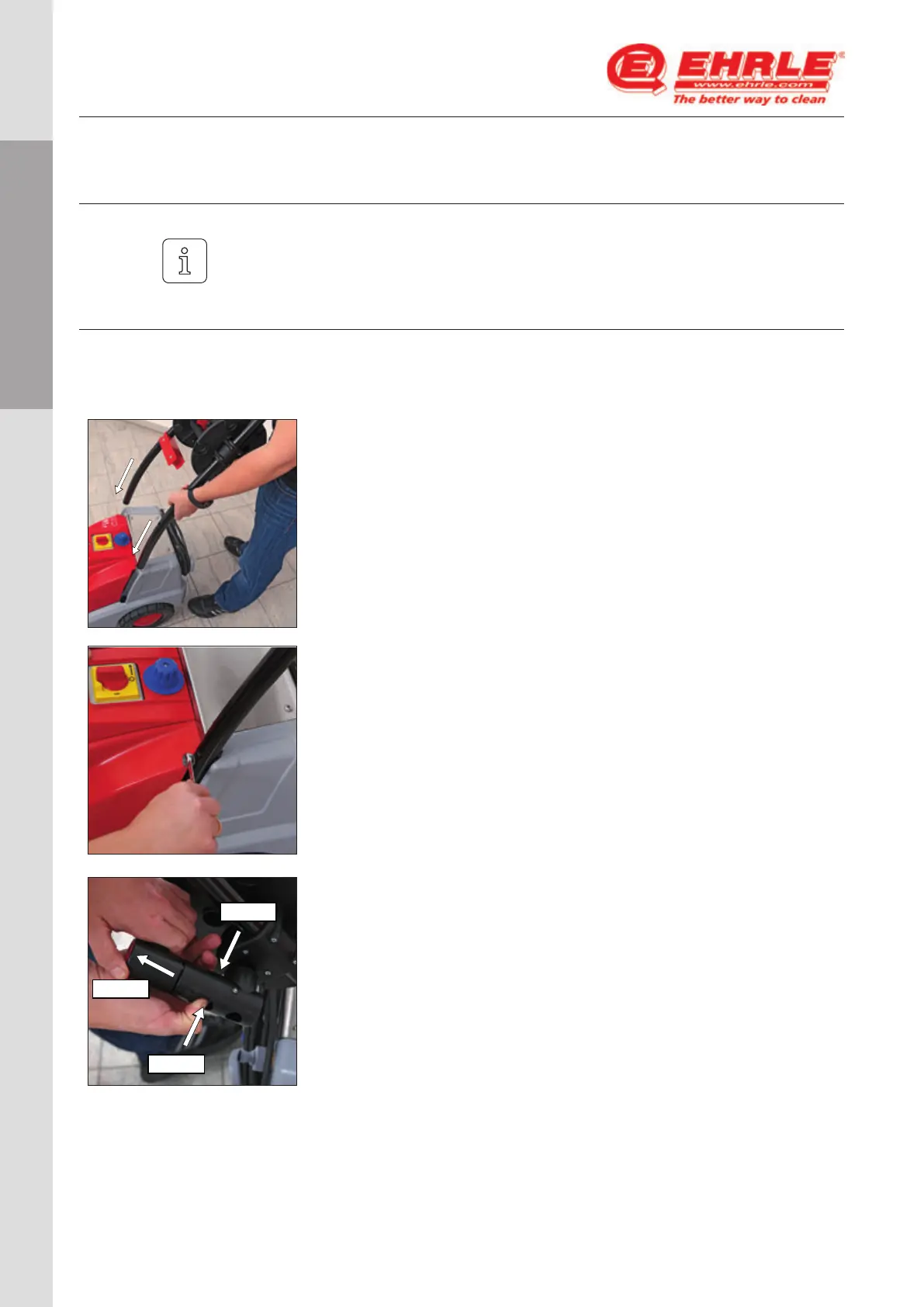 ○ Insert the handle with the hose reel into the Chassis openings
