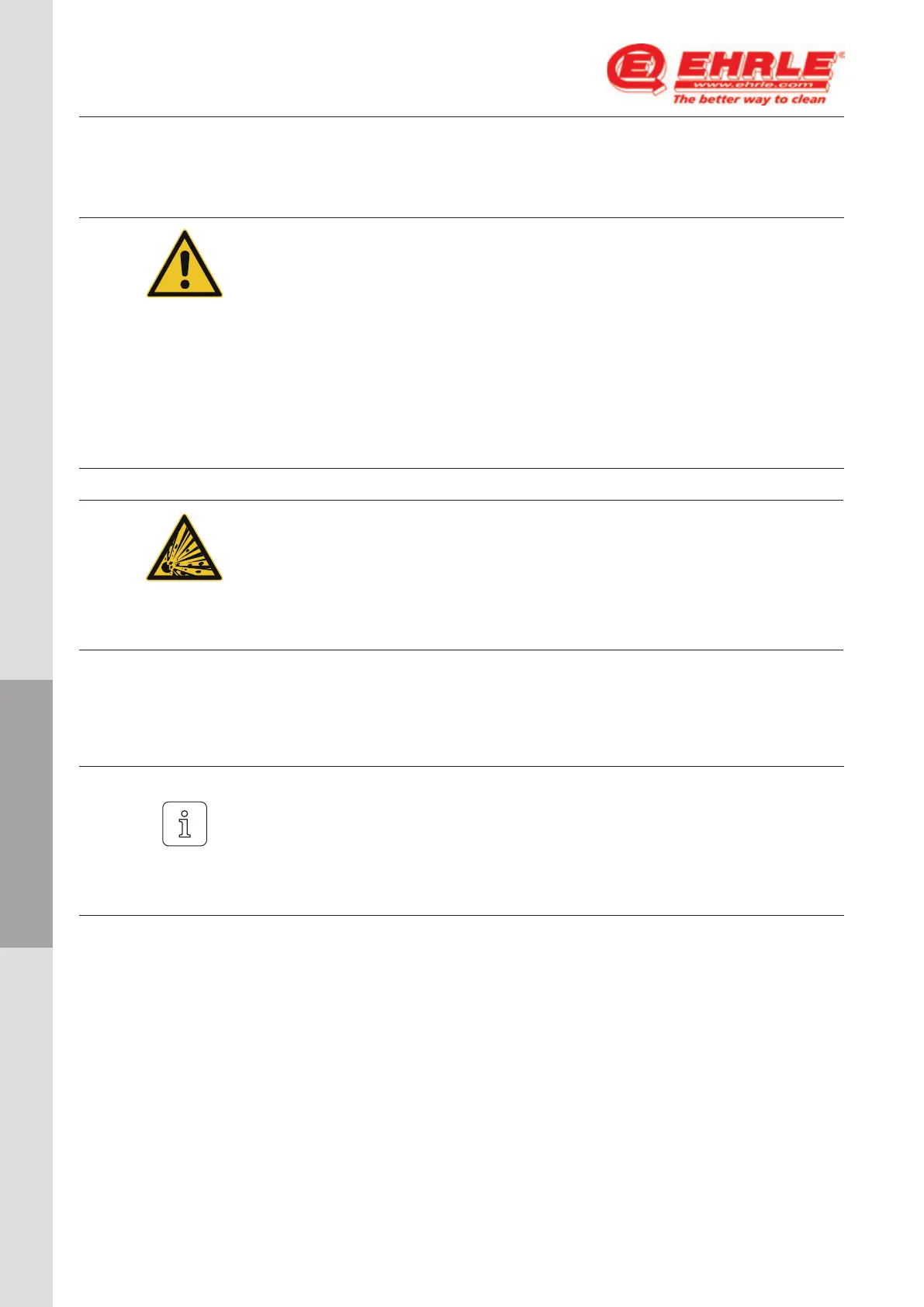 Risk of explosion due to use of inadmissible detergents.