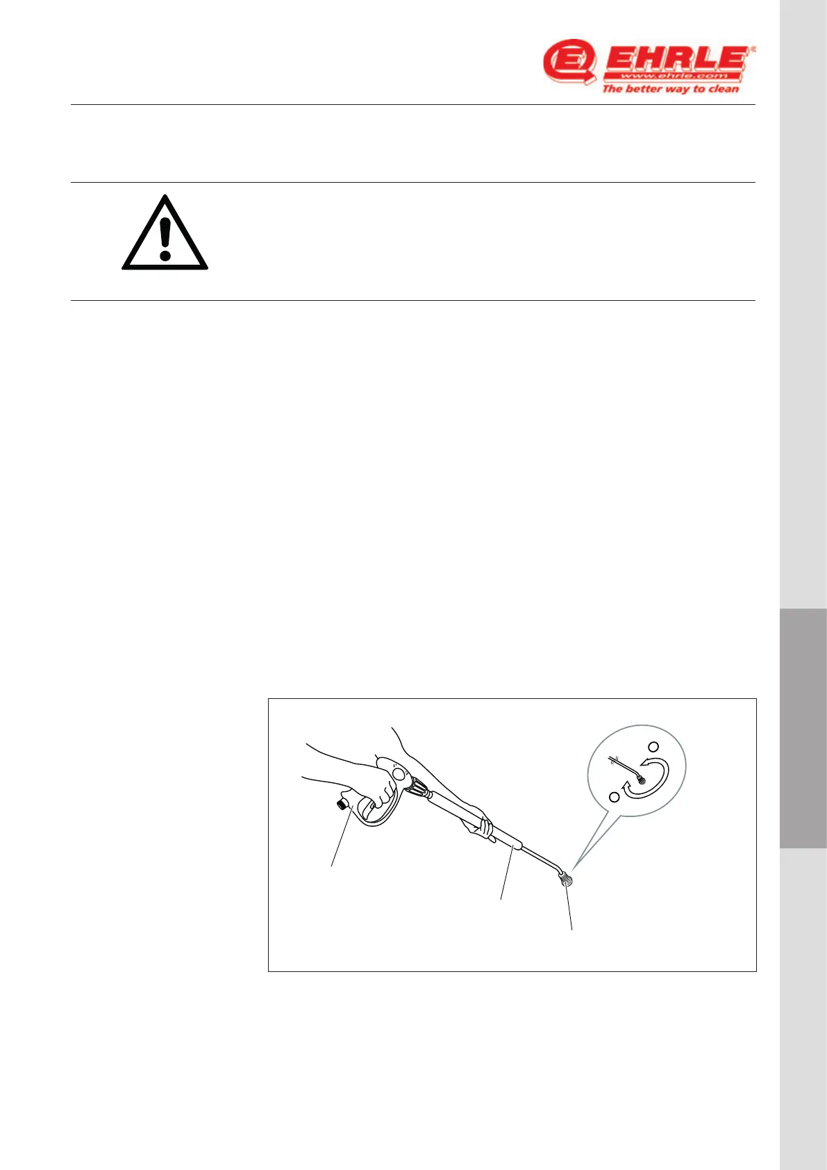 spray lance clockwise (direction „+“) to right stop. The cleaning agent is