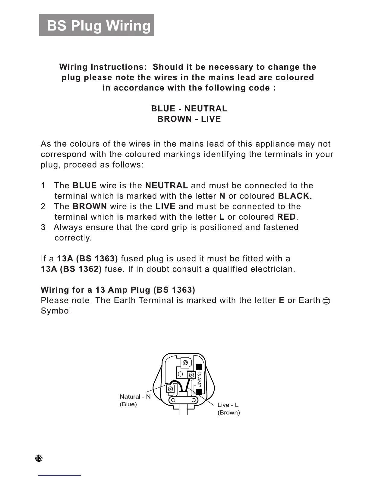 EHS XDry - Electrical Connection and Wiring; Mains Plug Wiring Guide