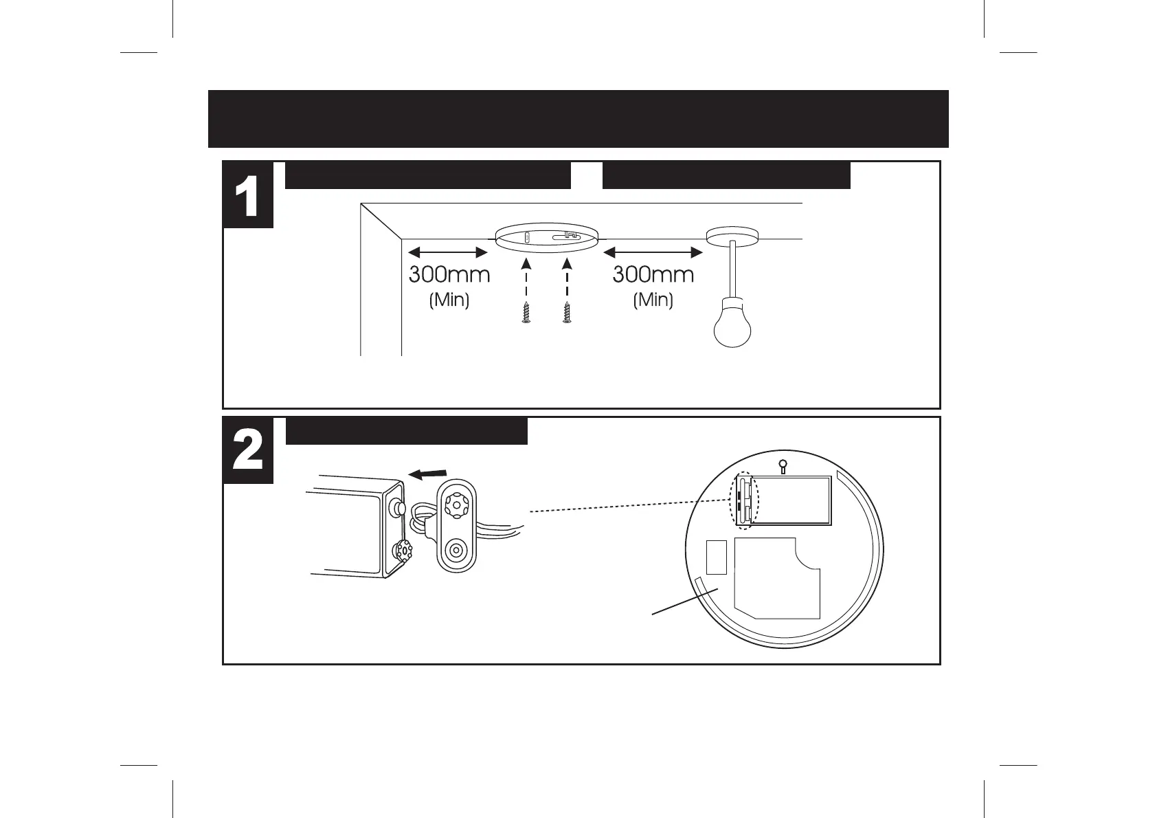 ALARM SHOULD BE CEILING MOUNTED AT LEAST 300MM FROM