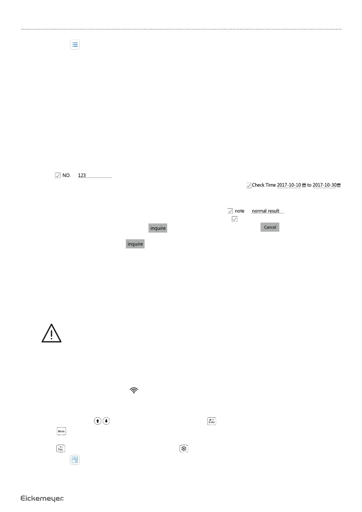 • In the query dialog, the search fi elds provided are: NO, Check Result, Check Time, note.