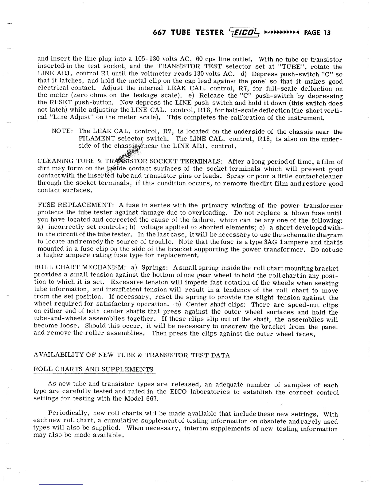 Eico 667 - MAINTENANCE (Continued); Calibration, Cleaning, and Fuse Replacement; Roll Chart Mechanism Description