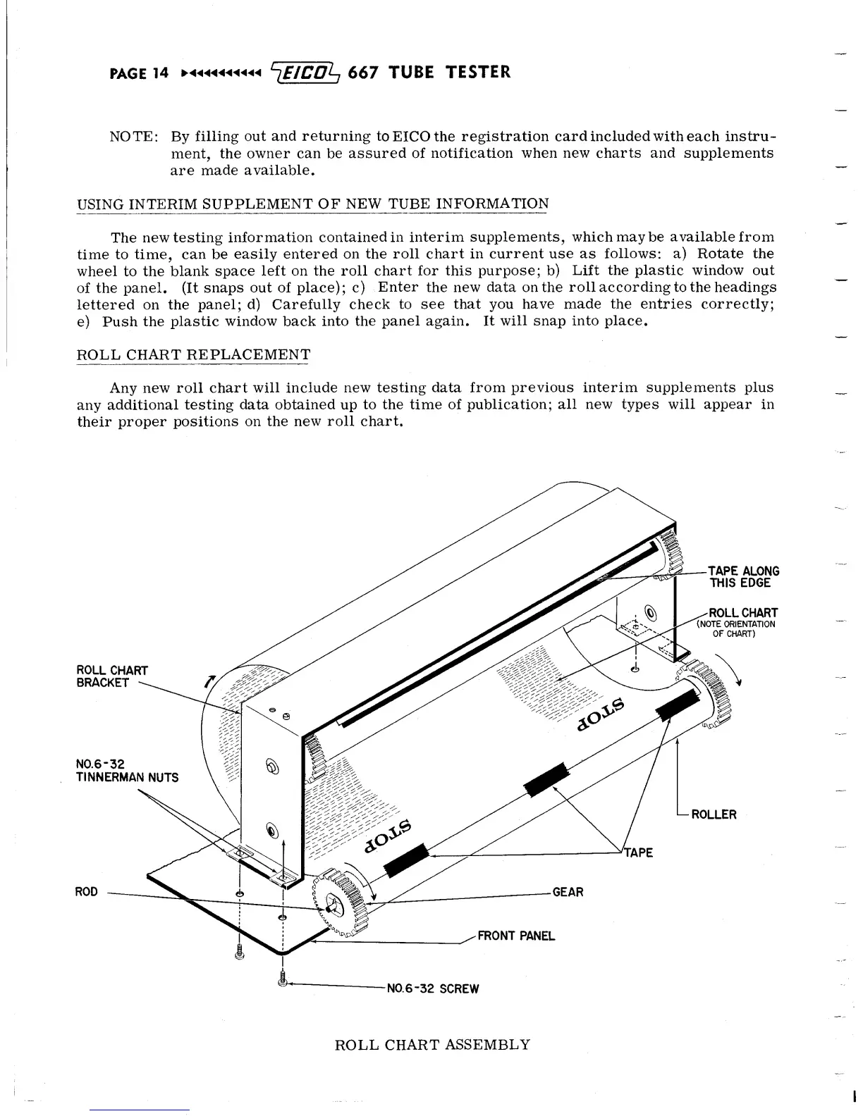 Eico 667 - MAINTENANCE (Continued); Roll Chart Replacement Instructions; Using Interim Tube Information