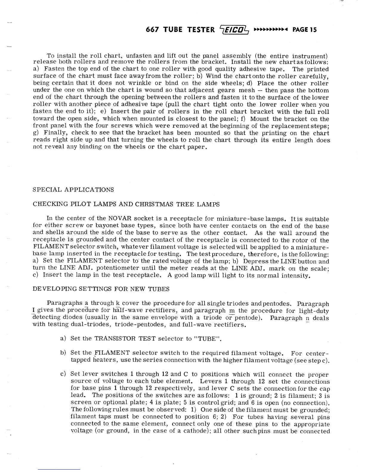 Eico 667 - DEVELOPING SETTINGS FOR NEW TUBES; General Procedure for New Tube Settings; Lever Switch Configuration