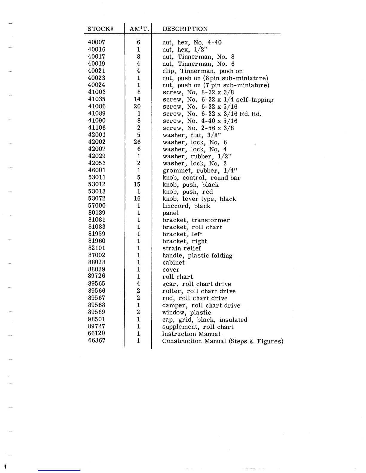 Eico 667 - REPLACEMENT PARTS LIST (Continued); Mechanical Parts and Documentation