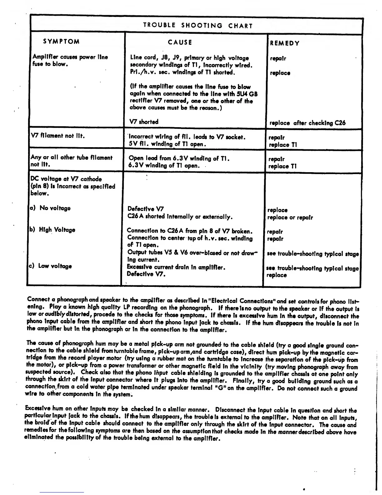 Eico HF-20 - Trouble Shooting Chart