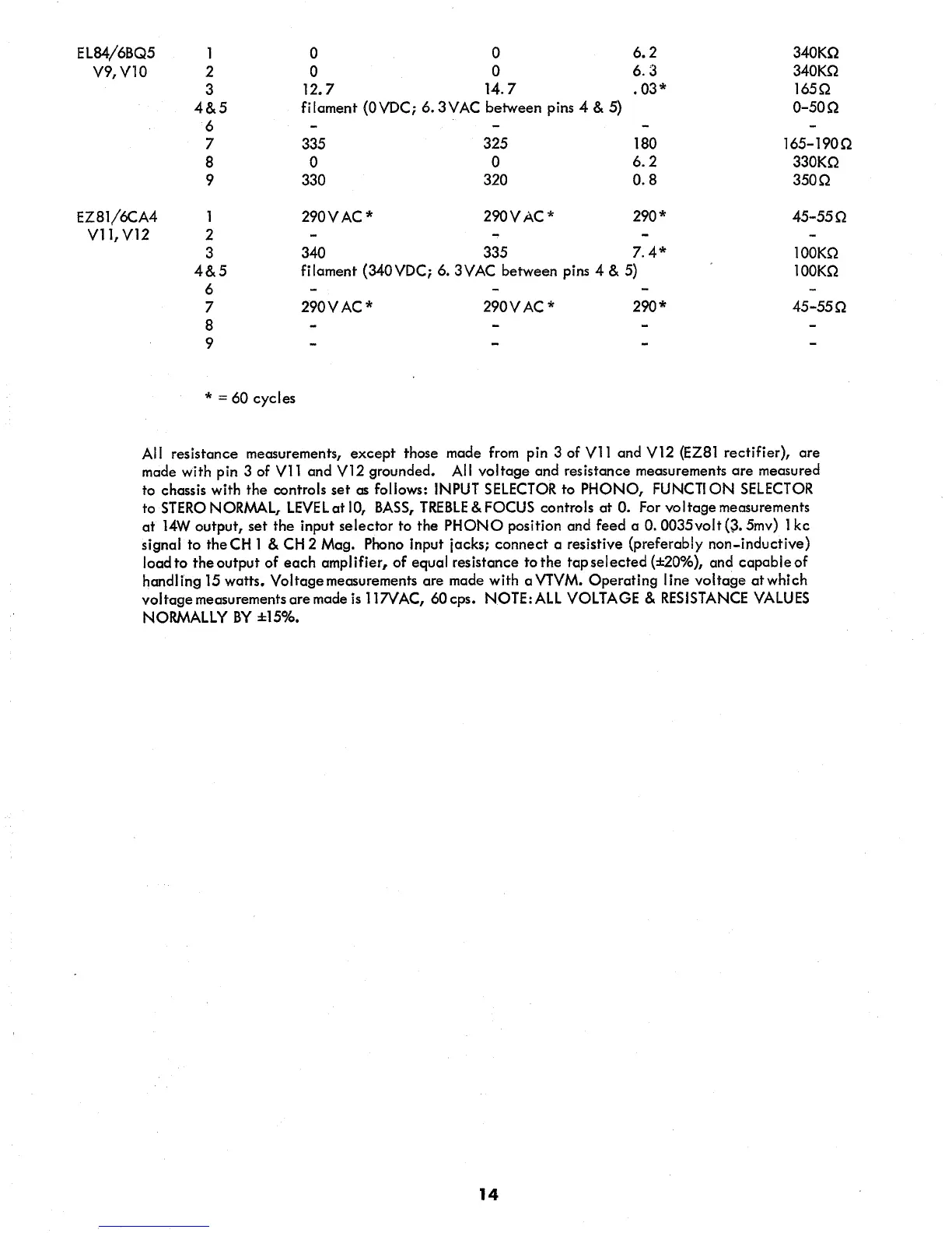 10, BASS, TREBLE & FOCUS controls at O. For voltage measurements