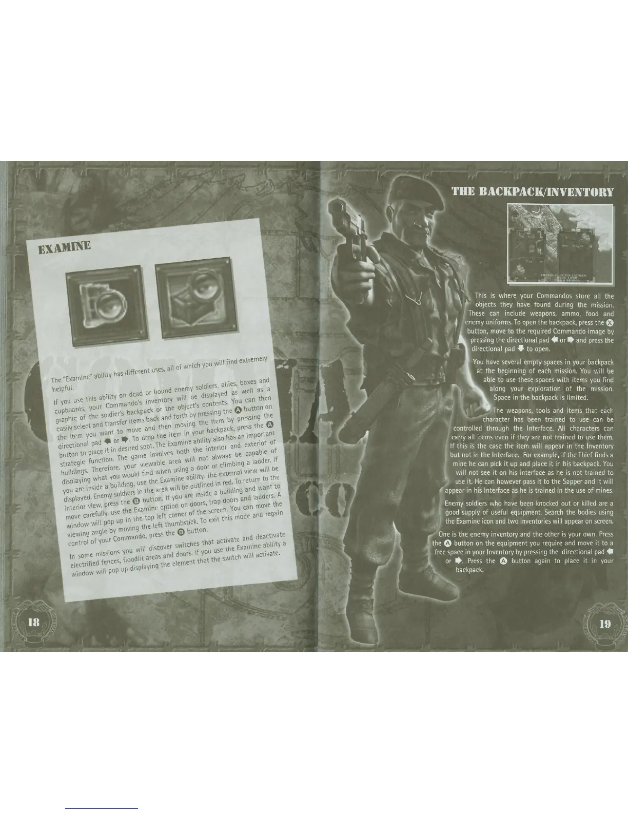Eidos COMMANDOS 2 - EXAMINE ABILITY AND INVENTORY; USING THE EXAMINE FUNCTION; BACKPACK AND ITEM MANAGEMENT; DIRECT ACTION OBJECTS