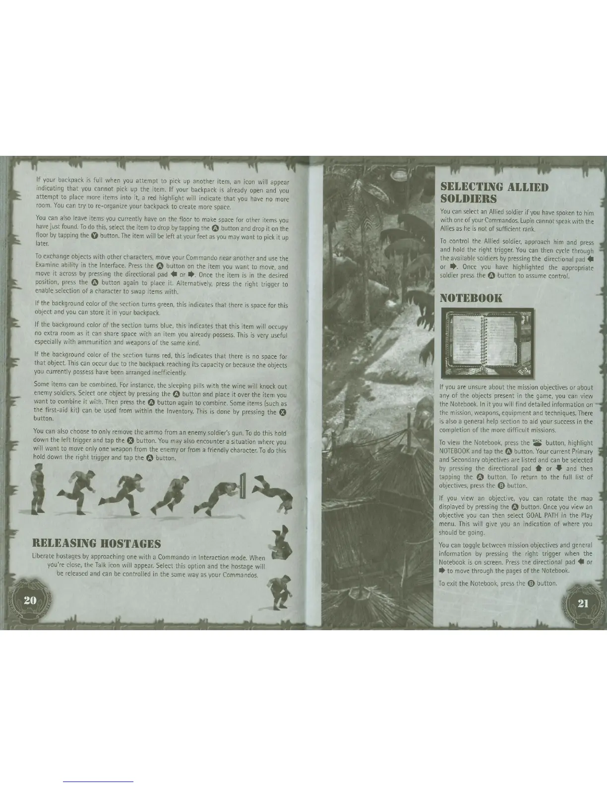 Eidos COMMANDOS 2 - MISSION OBJECTIVES AND ALLIES; RELEASING HOSTAGES; SELECTING ALLIED SOLDIERS; THE NOTEBOOK