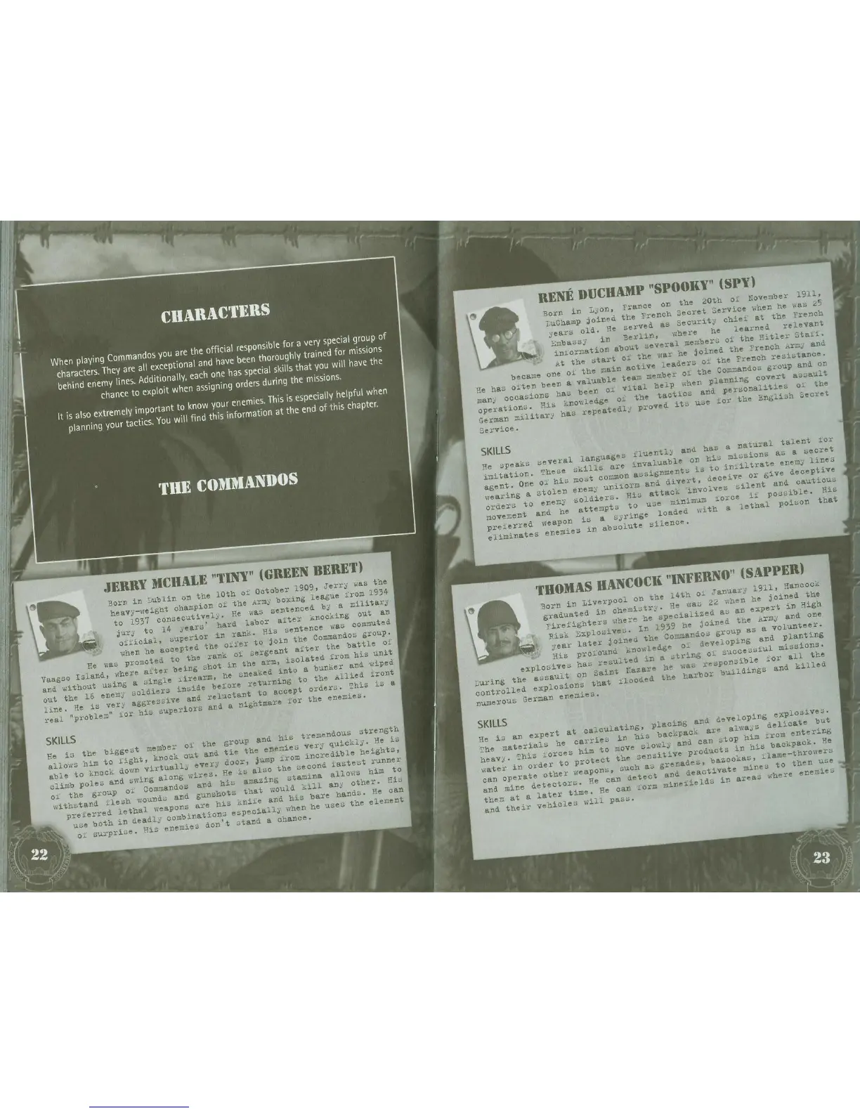 Eidos COMMANDOS 2 - CHARACTERS; THE COMMANDOS ROSTER