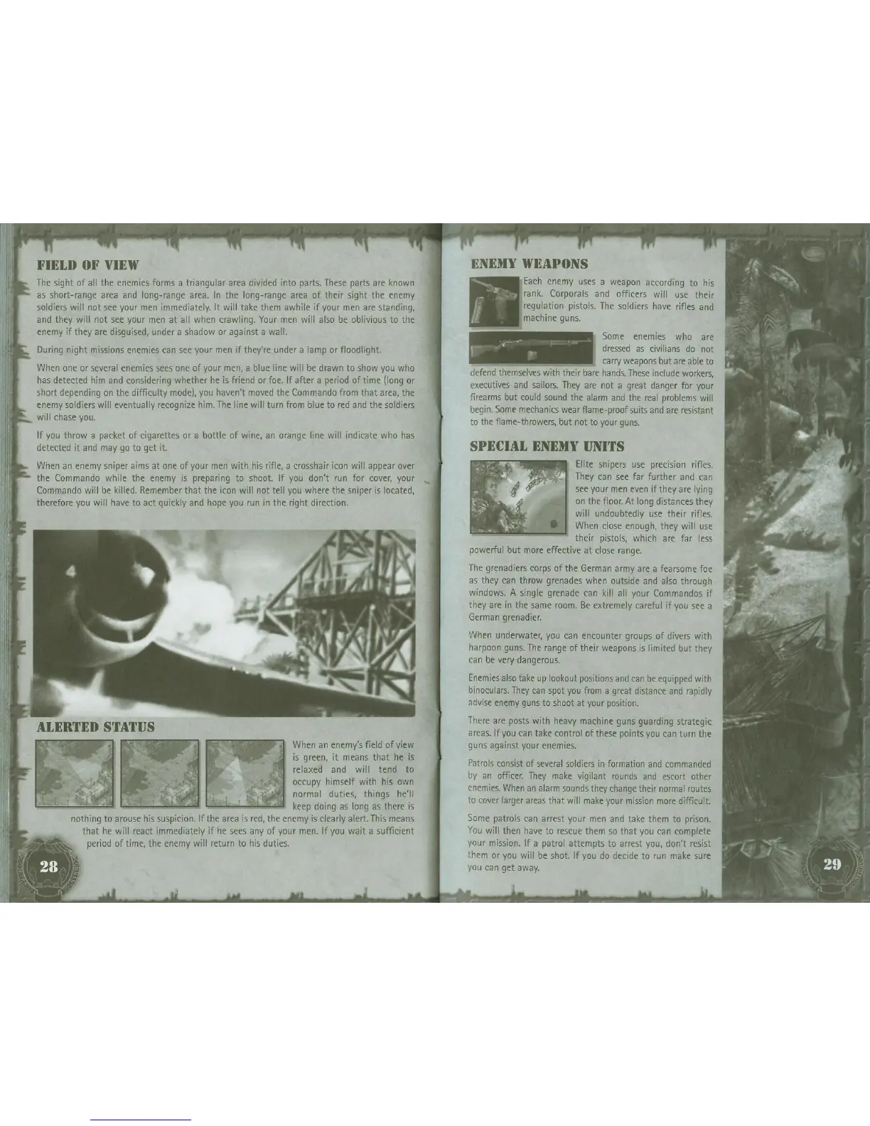 Eidos COMMANDOS 2 - ENEMY OBSERVATION AND STATUS; ENEMY FIELD OF VIEW MECHANICS; ALERTED STATUS INDICATORS; ENEMY COMBAT AND UNITS