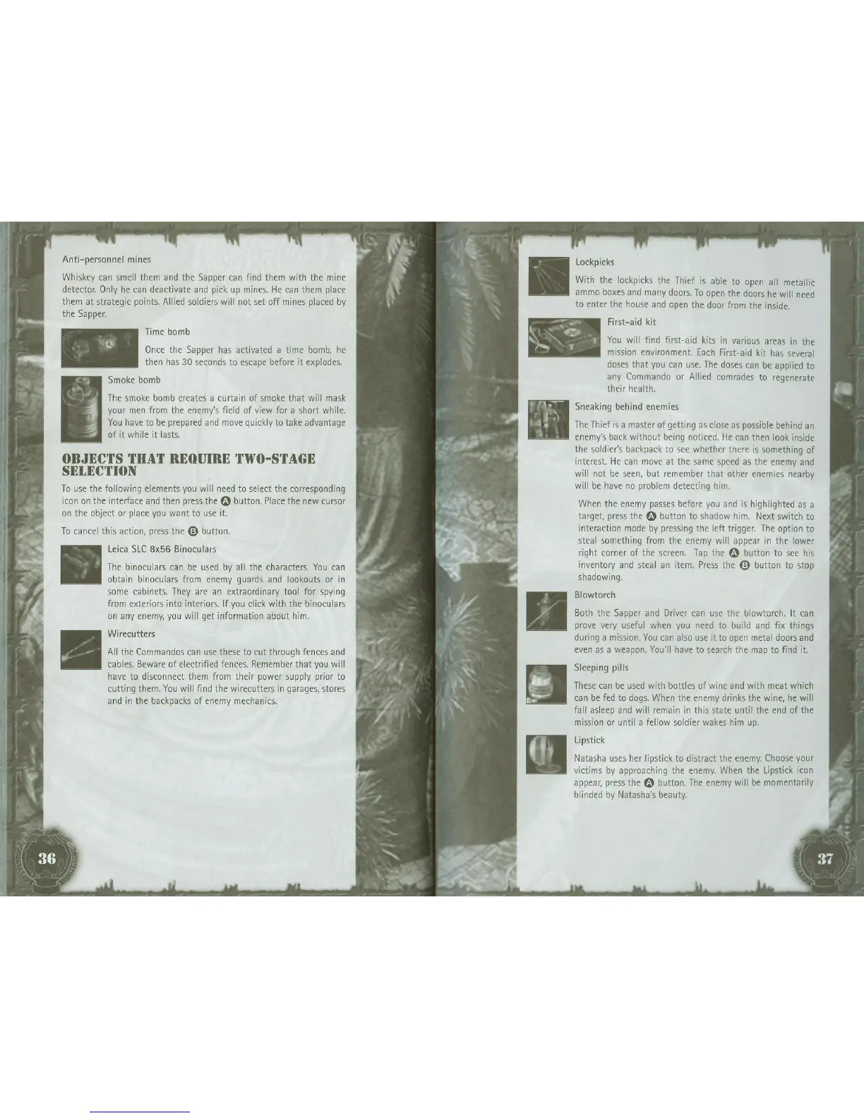 Eidos COMMANDOS 2 - OPERATIONAL ITEMS AND TOOLS; MINES AND BOMBS; INTERACTION AND UTILITY TOOLS; STEALTH MECHANICS