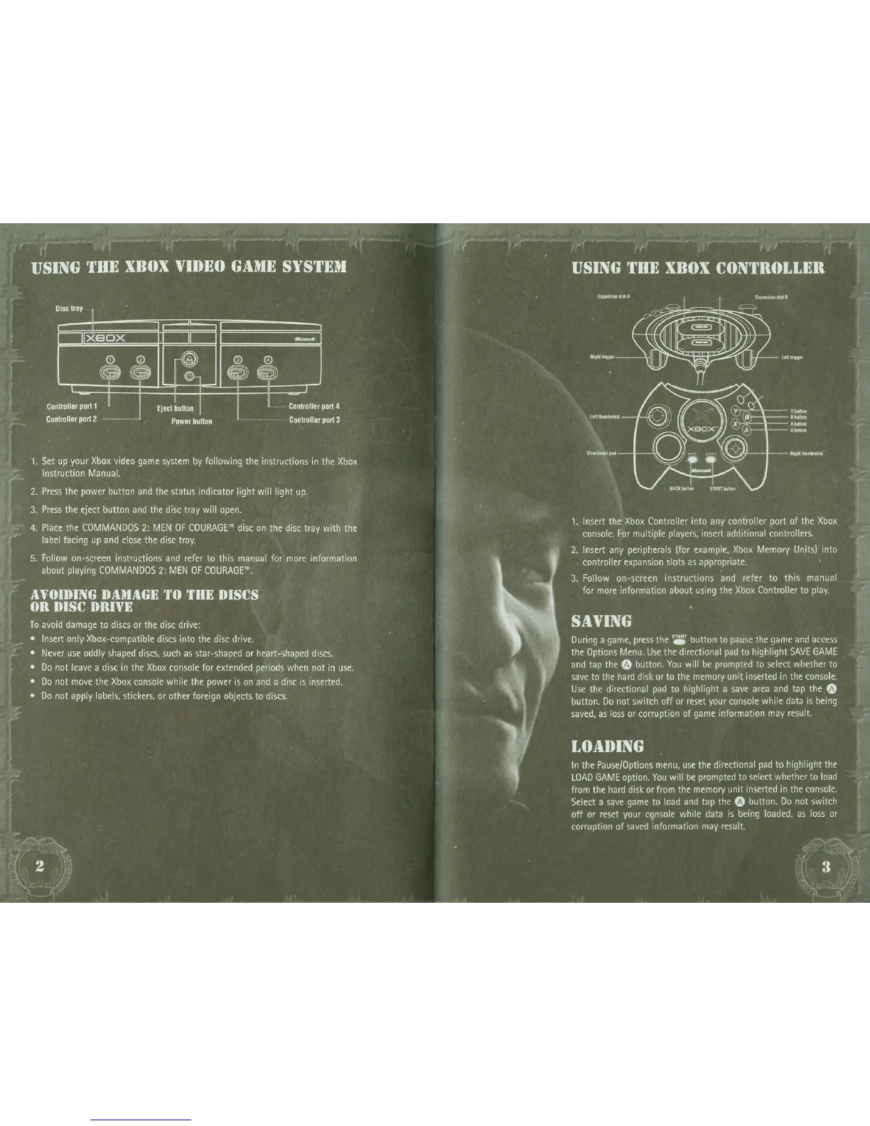 Eidos COMMANDOS 2 - XBOX SYSTEM AND DISC CARE; DISC AND DRIVE DAMAGE AVOIDANCE; USING THE XBOX CONTROLLER; GAME SAVING AND LOADING PROCEDURES