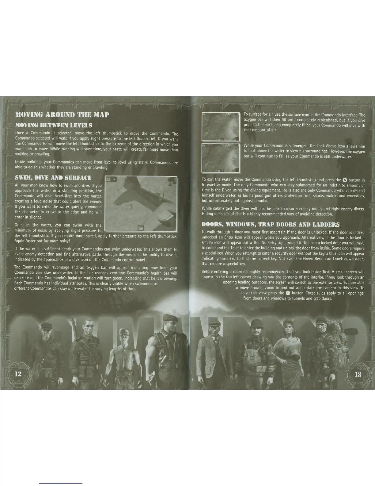 Eidos COMMANDOS 2 - MOVEMENT AND INTERACTION; MOVING BETWEEN LEVELS; SWIMMING, DIVING, AND SURFACING; OPENING DOORS AND LADDERS