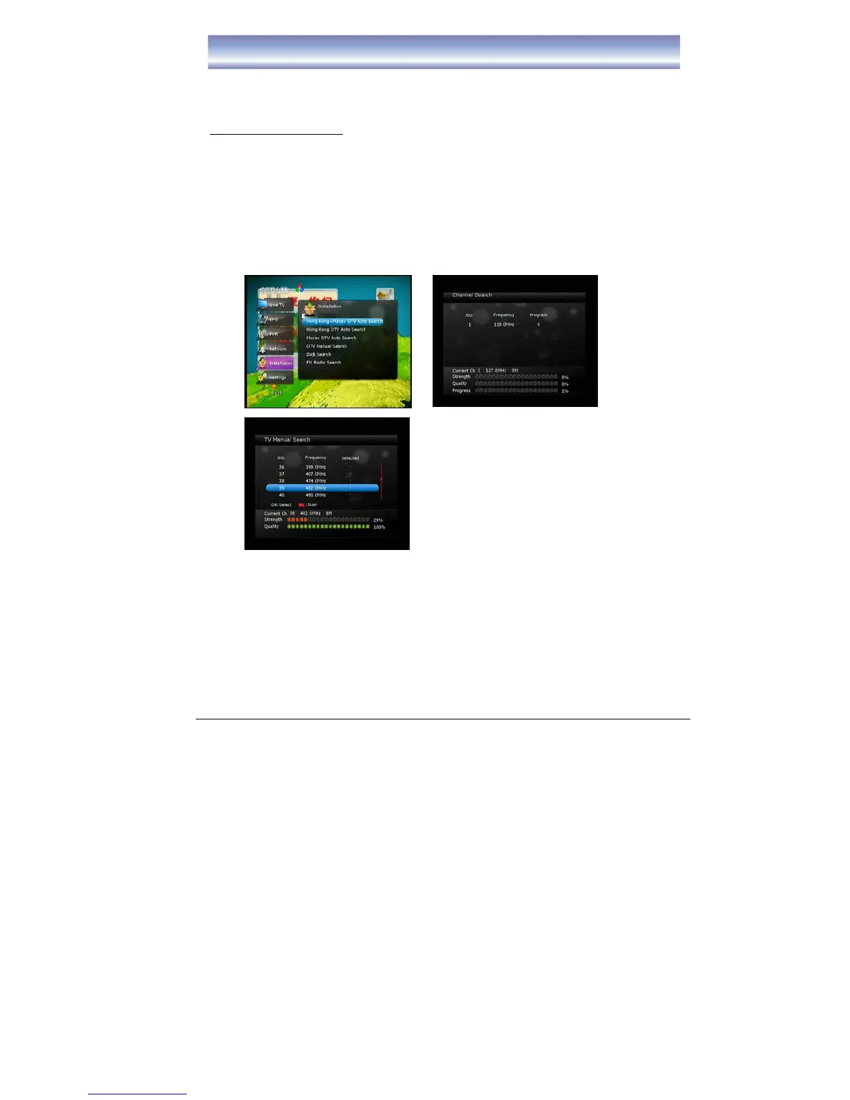 Auto Search: can select – Hong Kong & Macau DTV Auto Search, Hong Kong
