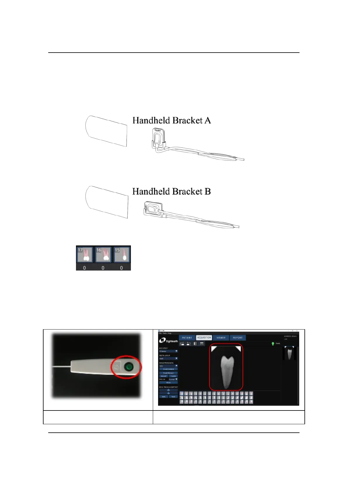 sensor and handheld bracket and then place it in the mouth for imaging. For