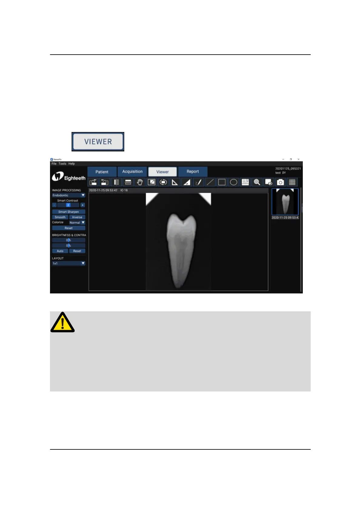 1. Obtain oral X-ray image data according to Section 6.1 or Section 6.2, and save