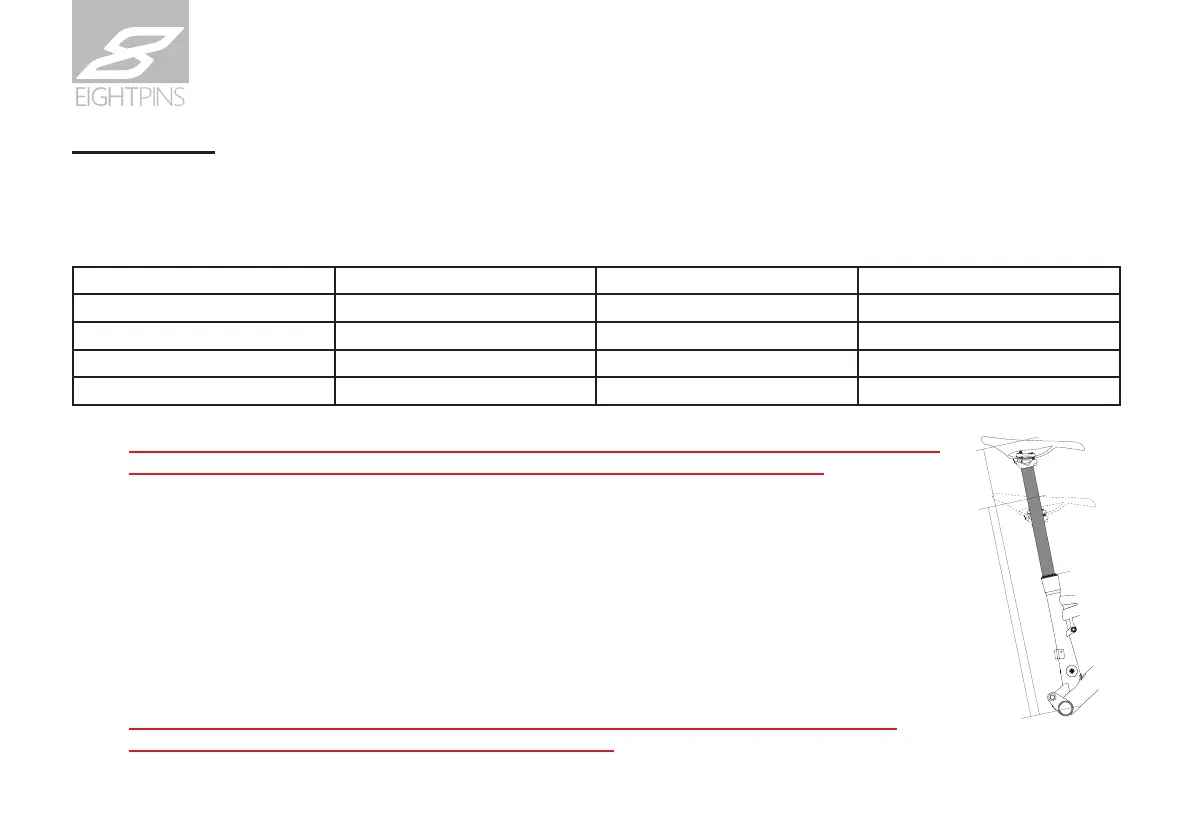 Eightpin‘sseatpostsaredividedintotwodierentsizeschemes.Thereisasizeschemewith4sizes:S,M,LandXLanda