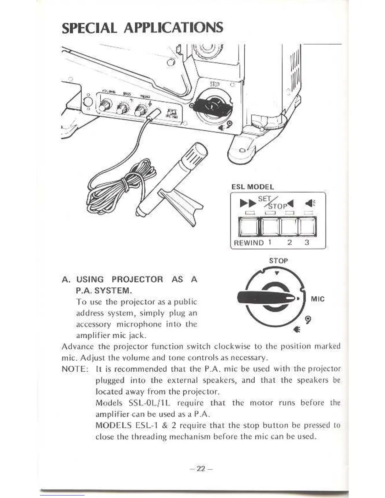 Eiki ESL - Special Applications; Using Projector as a P.A. System