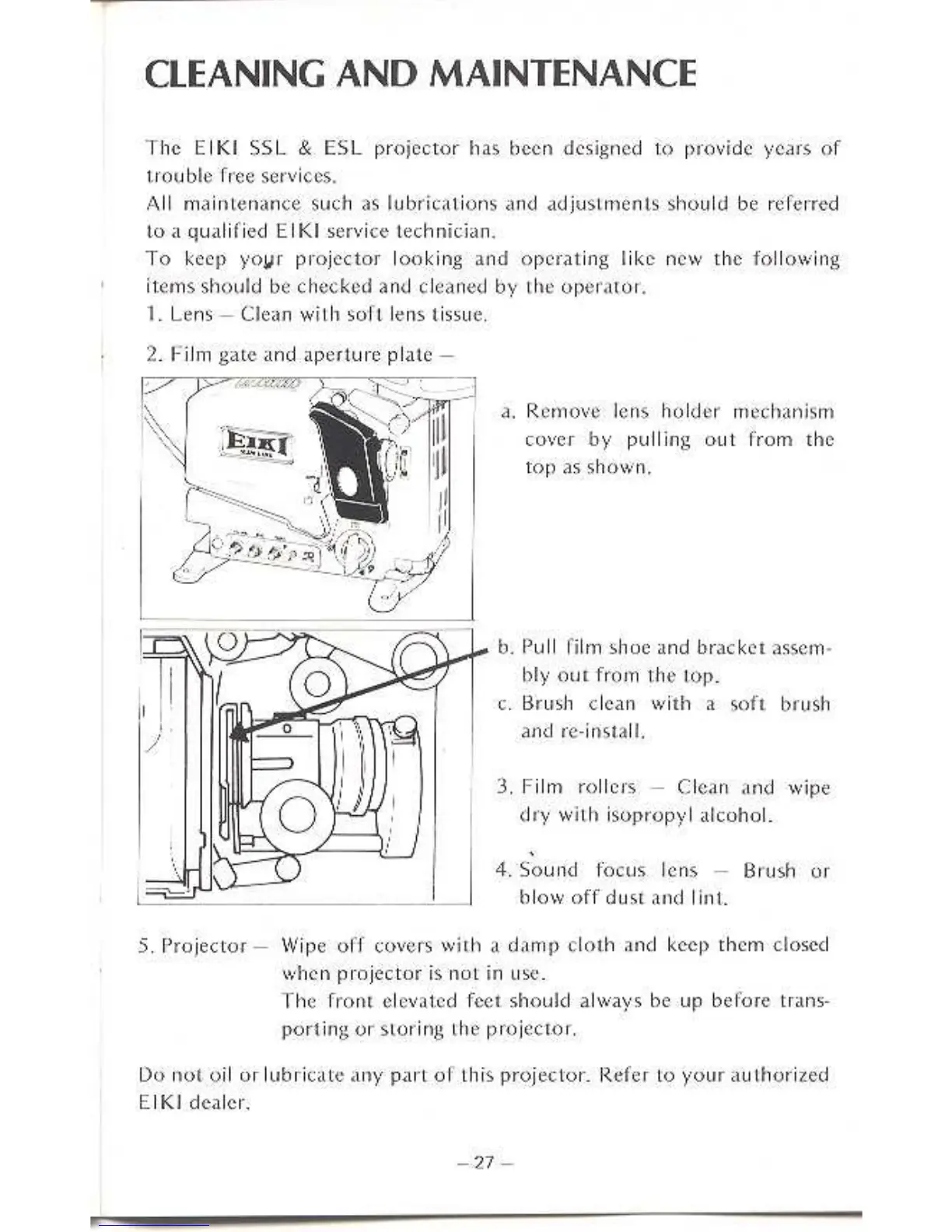 Eiki ESL - Cleaning and Maintenance