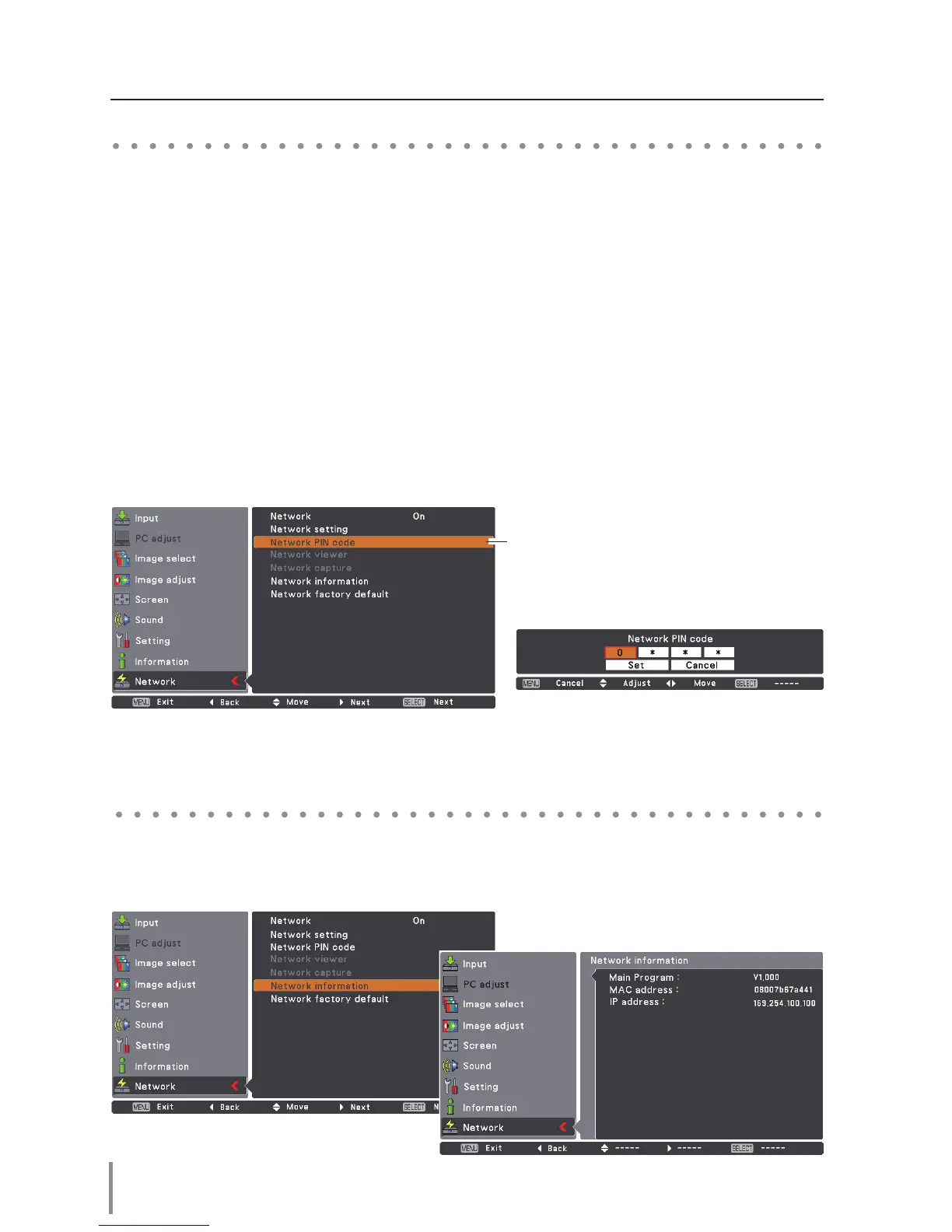 It is recommended to set the Network PIN code if you use the projector via the networks.