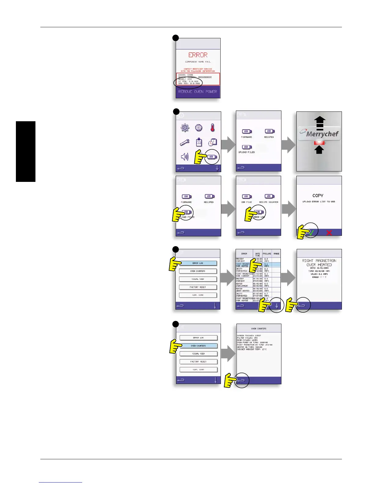 screen touches, lter cycles, door cycles, total Oven,