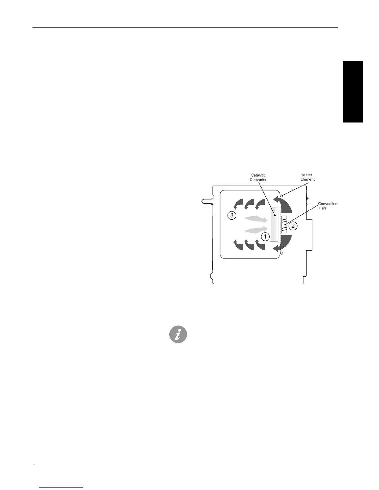catalytic convertor* (1) by the convection fan (2) and then