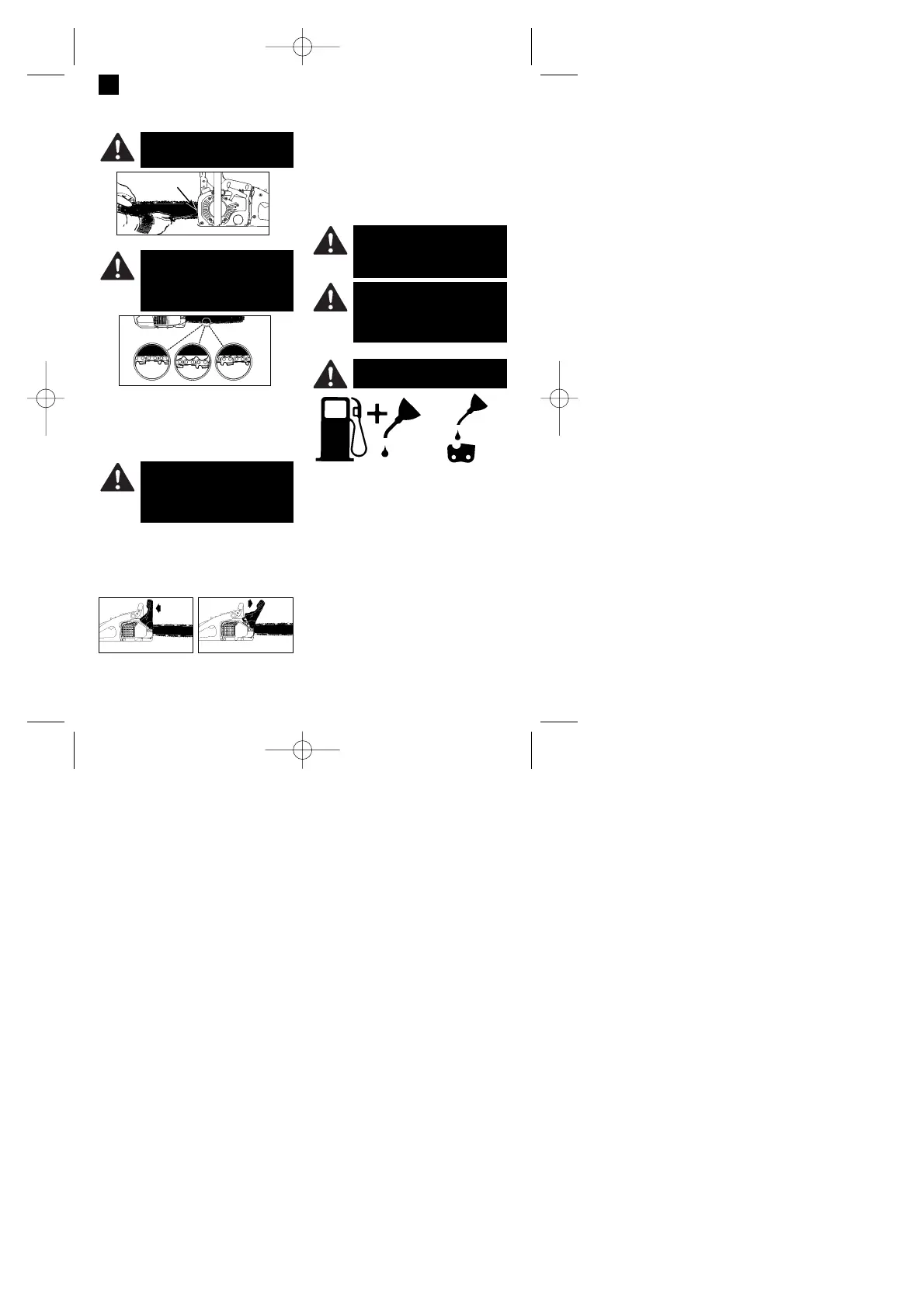 B. Wenn die Sägekette richtig gespannt ist, halten Sie die