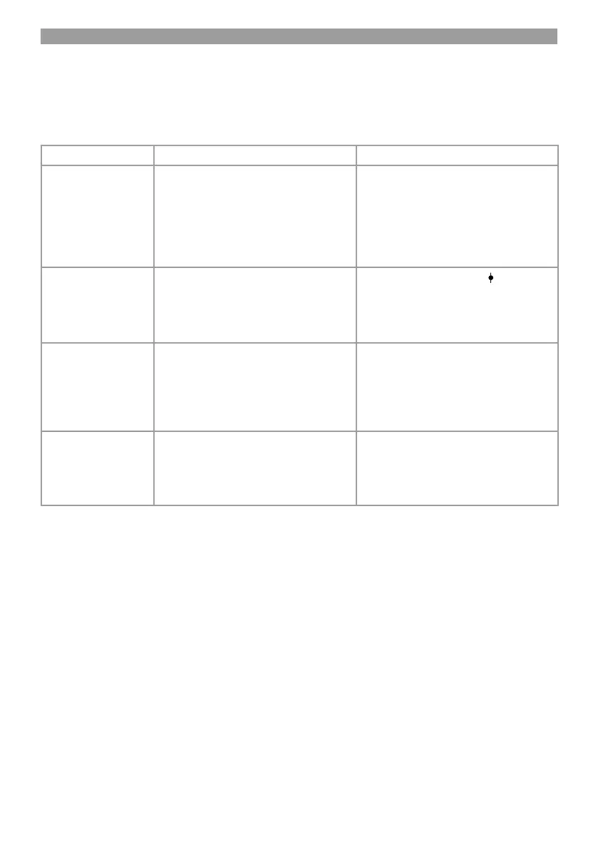 The table below contains a list of fault symptoms and explains what you can do to remedy the problem