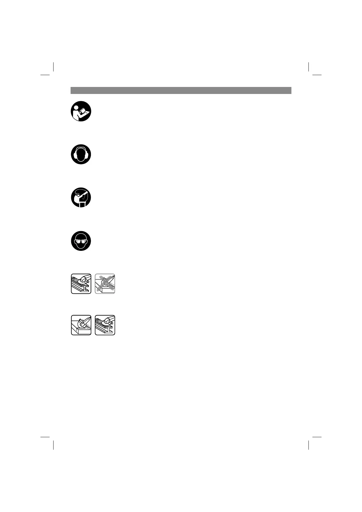 Caution! Wear safety goggles. Sparks generated during working or splinters, chips and dust emitted