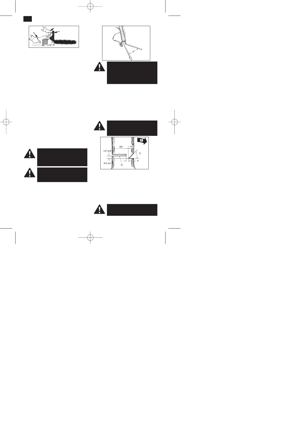 l’arbre (E). Eviter de scier trop profondément l’entaille hor-