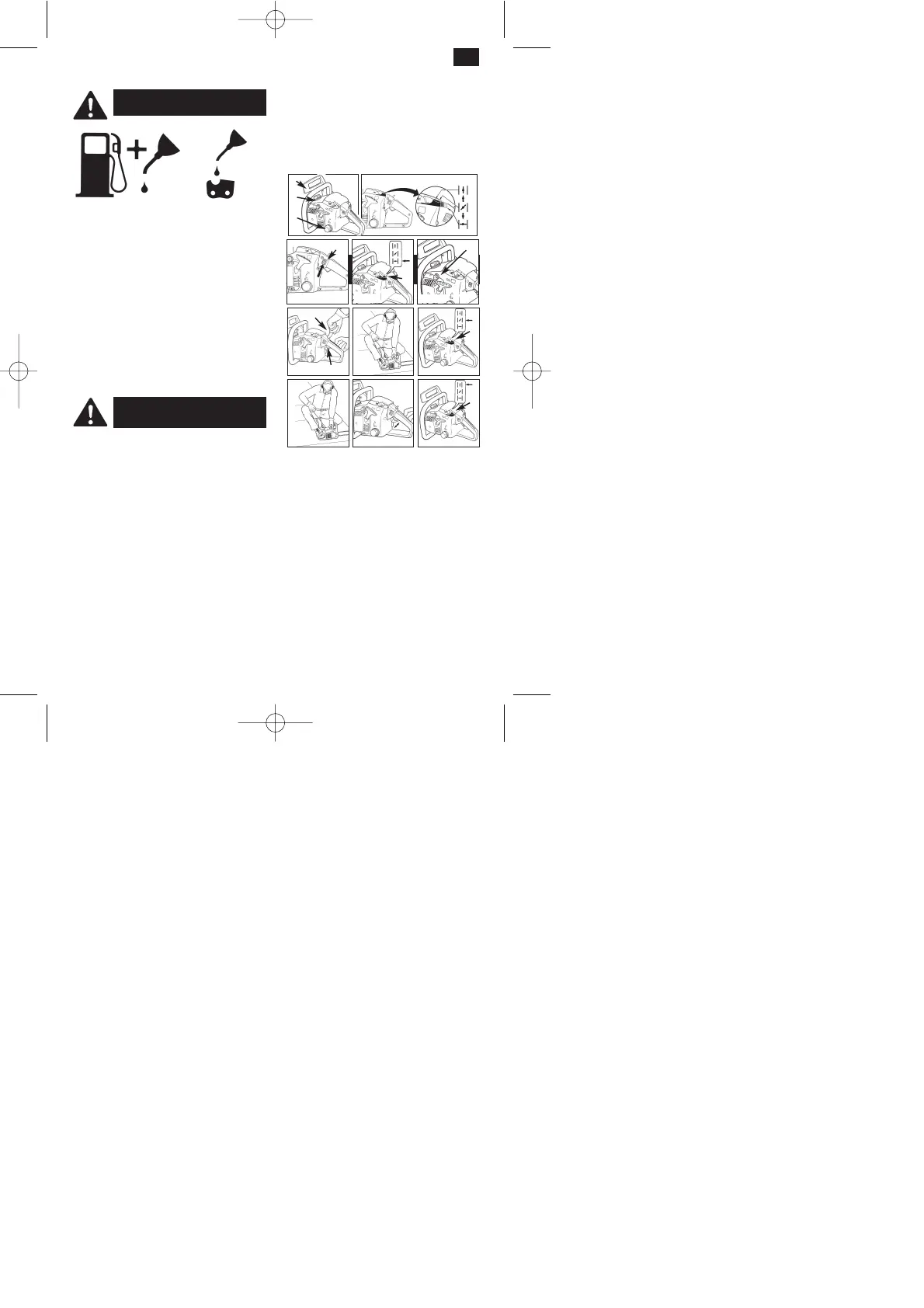 7. Hou de zaag vast en trek de starter snel vier keer. De