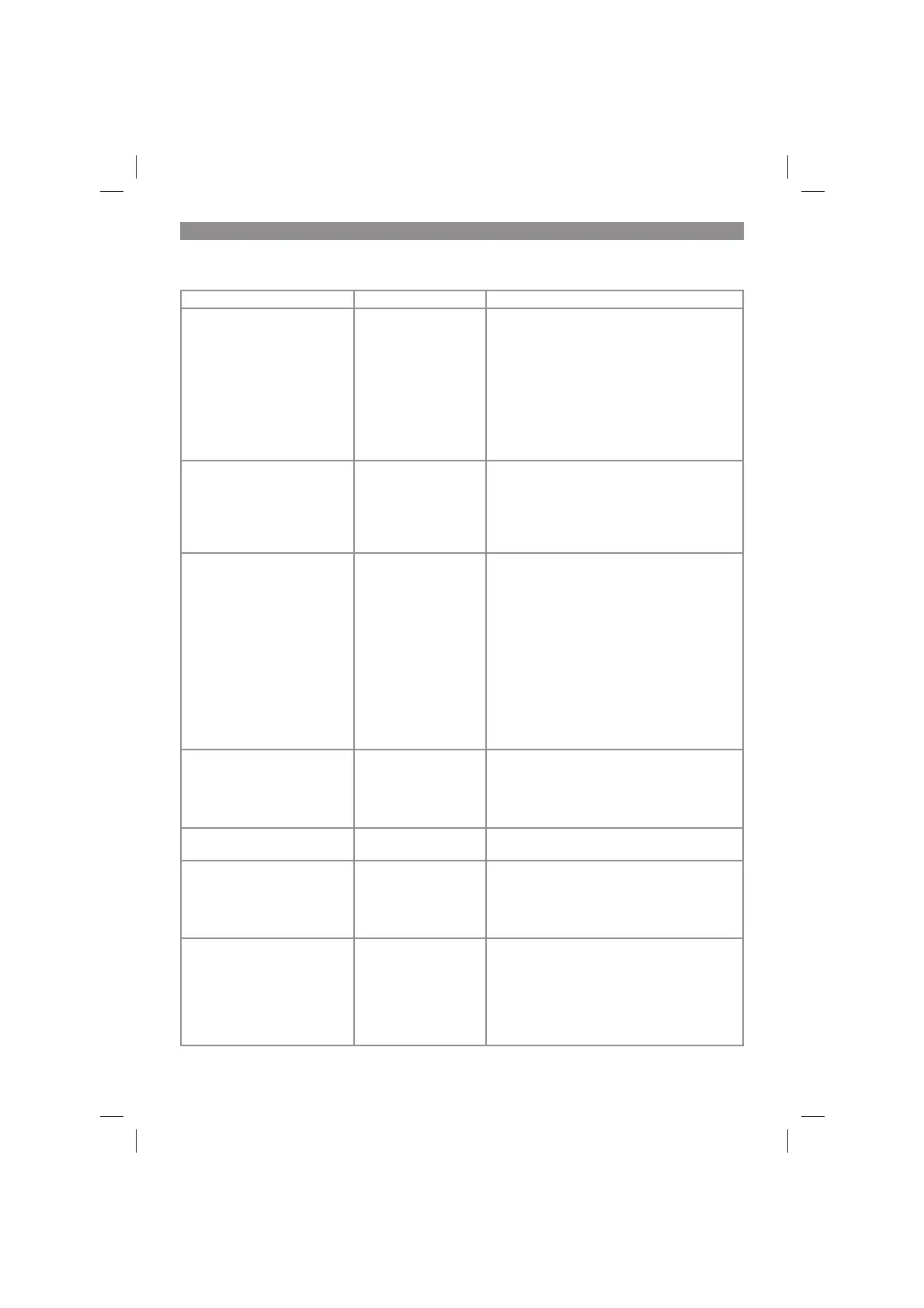 Fault Possible cause Remedy