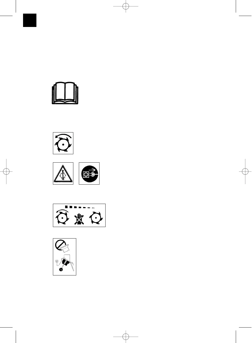 Observera! De roterande knivarna stannar inte omedelbart efter det att strömbrytaren ställts på