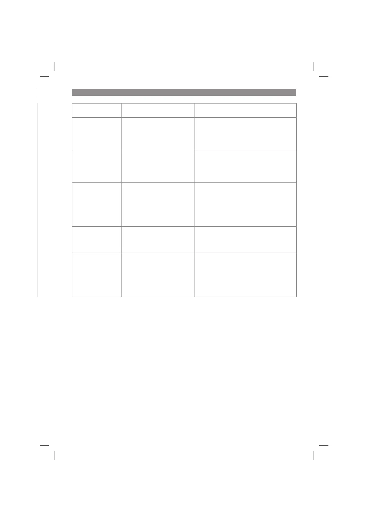 Description / possible cause Solution