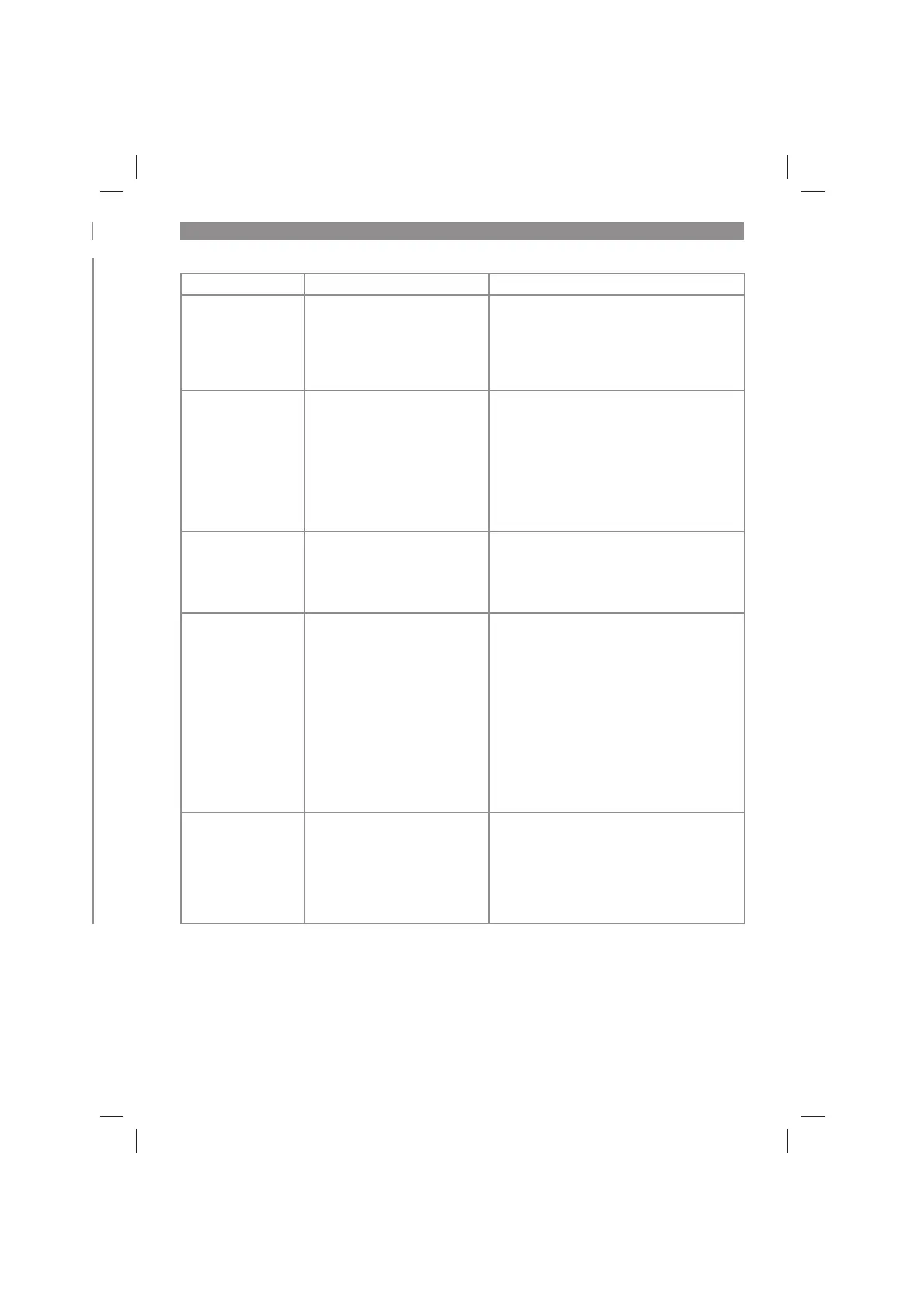 Fault Possible cause Remedy
