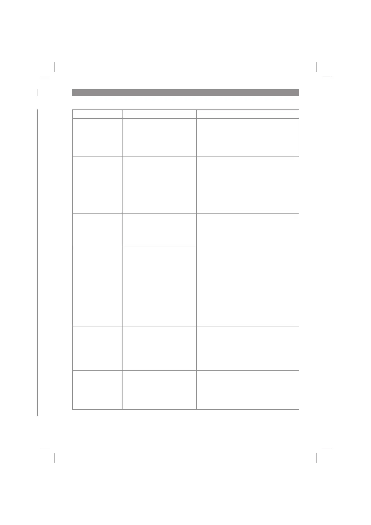 Fault Possible cause Remedy
