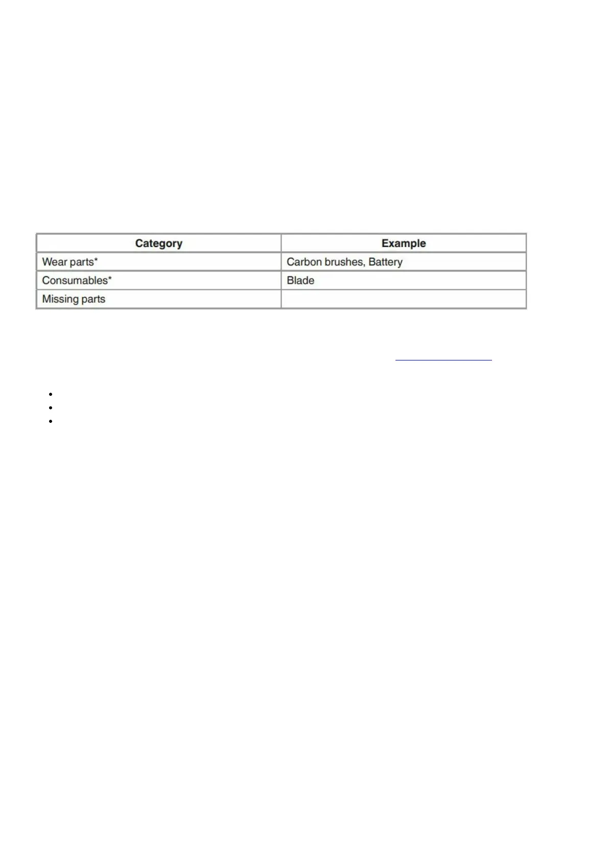 Please note that the following parts of this product are subject to normal or natural wear and that the following parts