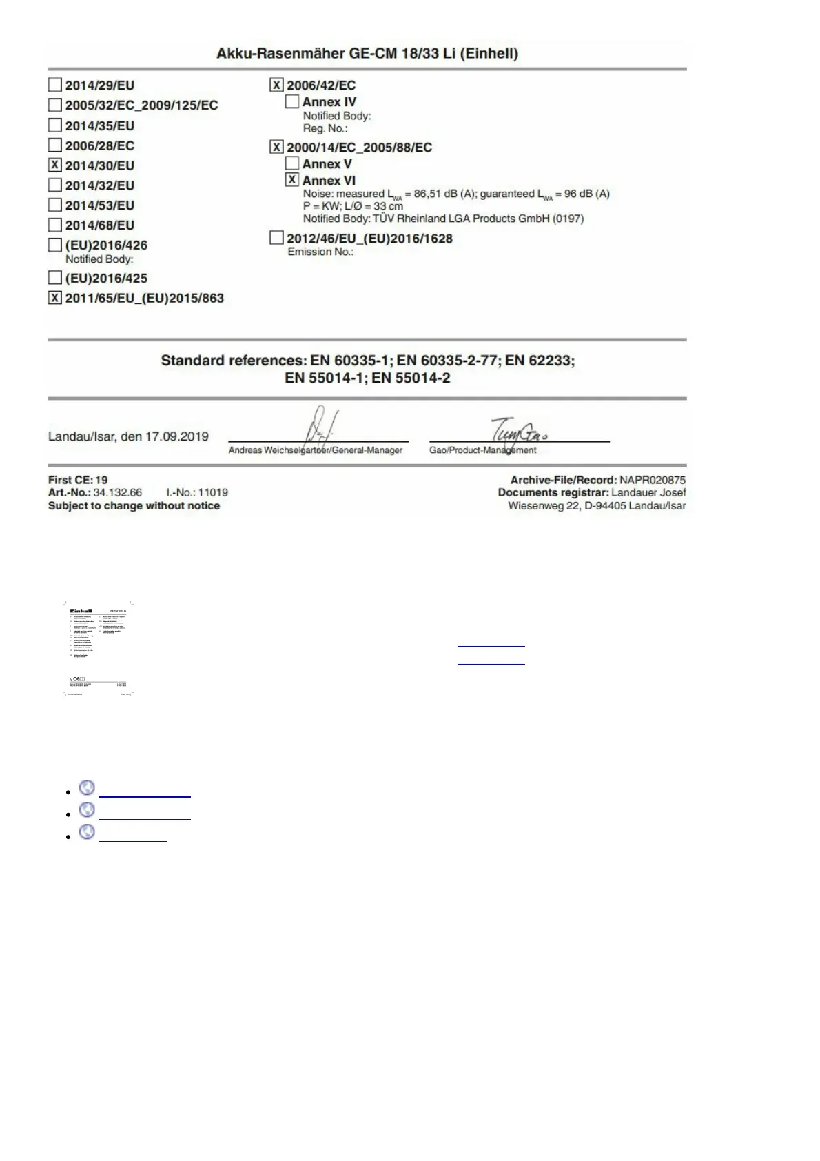 3. Einhell Cordless Push Sweeper Instruction Manual Einhell Cordless Push Sweeper Instruction Manual TE-SW 18/610
